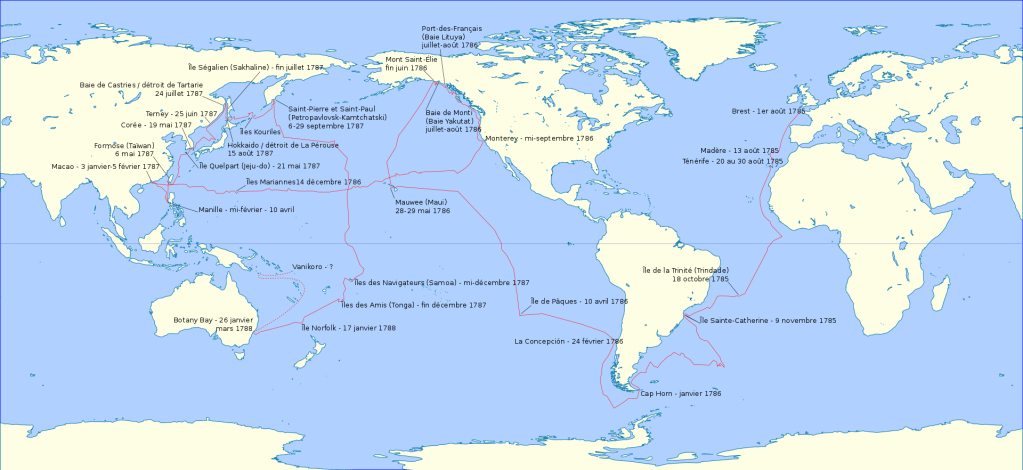 On August 1, 1785, a French expedition led by Jean François de Galaup, comte de Lapérouse (referred to as Lapérouse) set off with a goal to explore the world, both politically and scientifically. Specifically, they were to explore trading possibilities and the activities of foreign powers, both European and indigenous, map the world, and do science. On board their two vessels, L’Astrolabe and La Boussole, were experts in astronomy, geology, agriculture, botany, birds, medicine, and two illustrators.