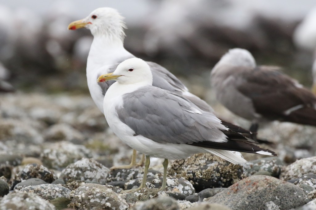 Aug 25 – Compared to California Gulls, the juveniles are smaller, whiter, and with brighter pink in the bill.
