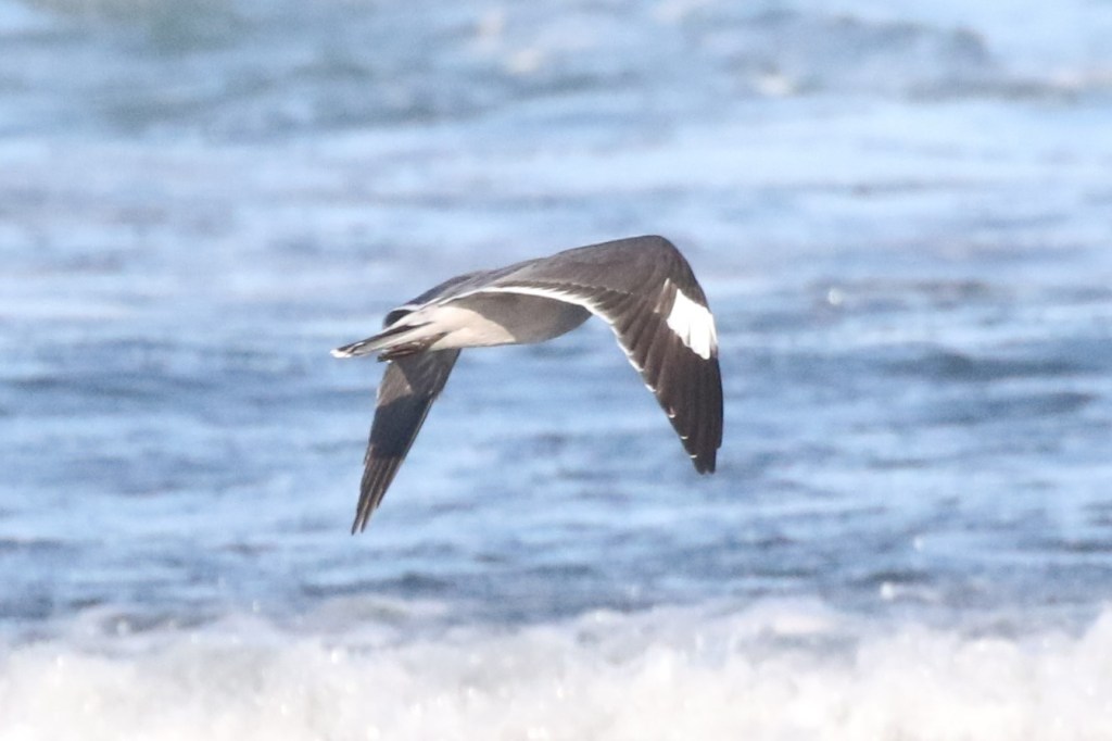 Oct 4 – A small percentage of adults show “jaeger-morph” wing patterns, with variable amounts of white in the primary coverts. This adds to their jaeger habits of chasing other gulls.