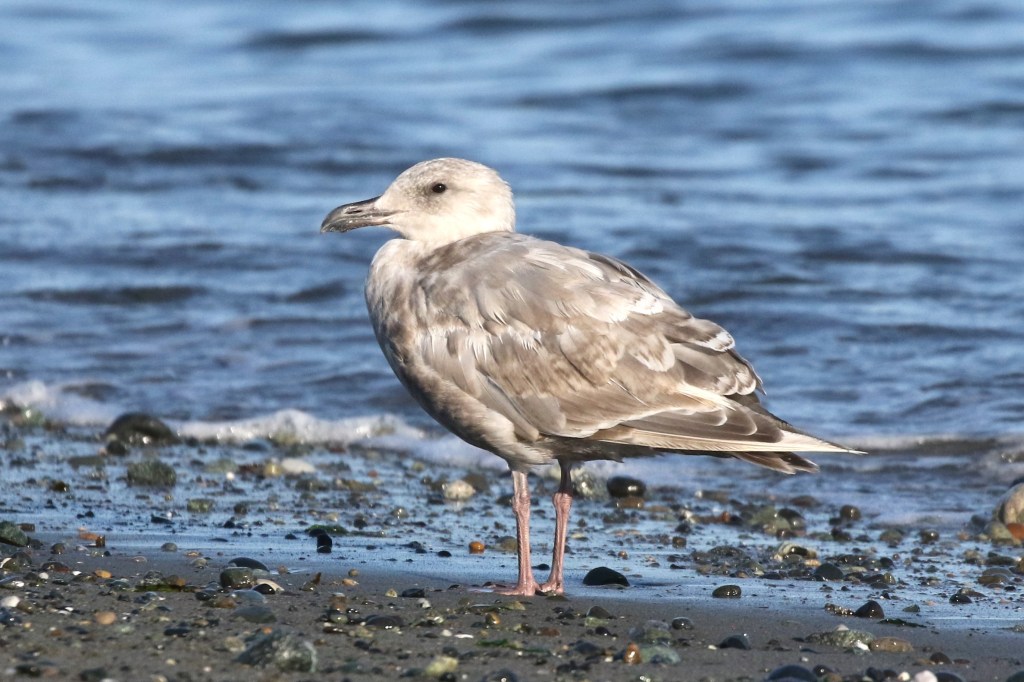 July 14 – This bird could be confused for Glaucous, but a Glaucous would never have dark in the middle of the bill. Given the time of year, this bird is typical of an over-summering one-year-old Glaucous-winged Gull.